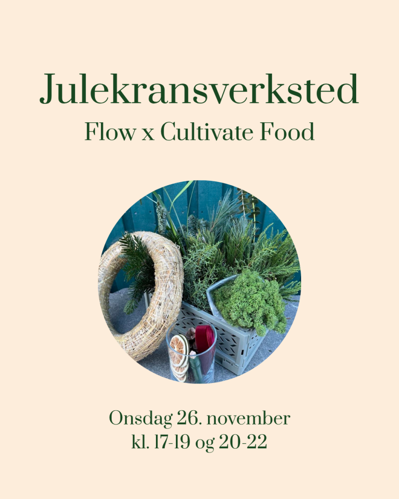 Lag din egen favorittkrans med fageksperter fra Flow & nyt julekrydrede retter og deilig drikke fraCultivate Food & Wine.